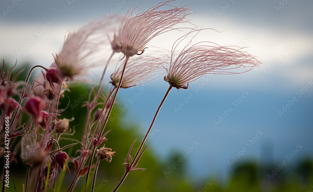 Prairie Smoke Wild Flowers In A Natural Prairie Restoration With Blue Sky And Clouds In Background Geum Triflorum They Open After Pollination Stock Photo Adobe Stock